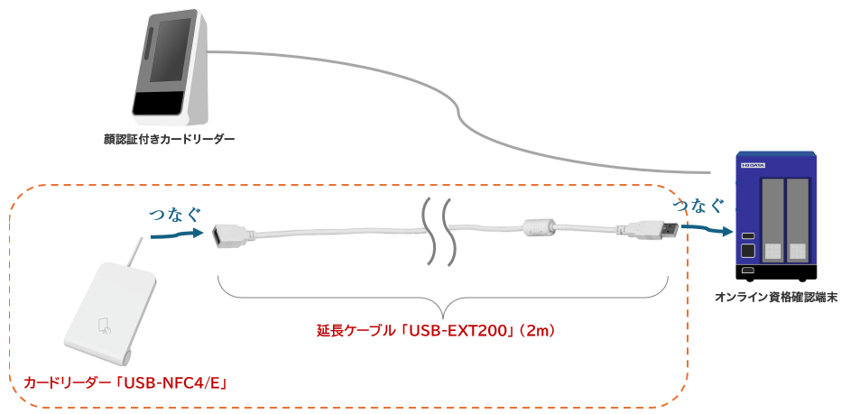 【IODATA】「スマホ保険証」に対応するため、汎用カードリーダー(USB-NFC4シリーズ)を導入したいが、ケーブルが短いため設置できない場合