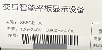 インタラクティブスマートボード本体背面シールのバーコード下がシリアル番号となります。