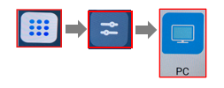 ①ホームアイコン→スイッチアイコン→PCアイコンを順にタップし、Windowsに切替