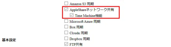 ※AFP接続のTime Machineバックアップに対応しています。SMB接続には対応していません。