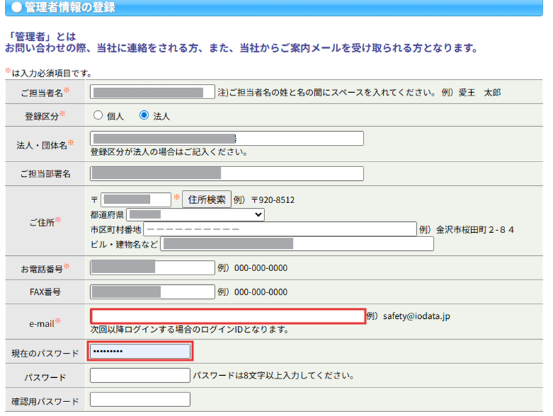 ※パスワードも合わせて変更される場合は、「パスワード」と「確認パスワード」の欄に新しいパスワードを入力