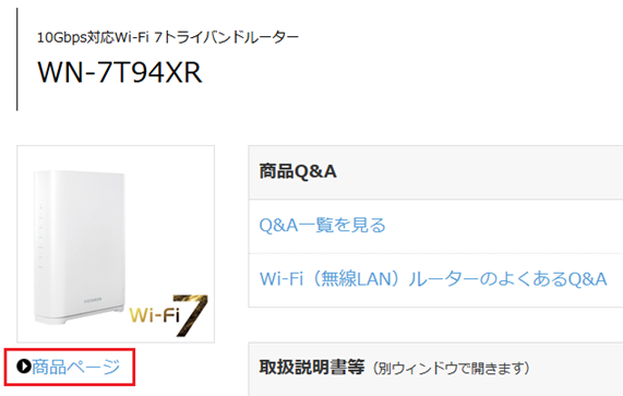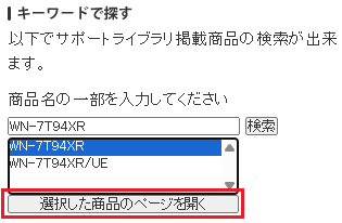 1.こちらからWi-Fiルーターの型番を入力&検索し、「選択した商品のページを開く」をクリックします。