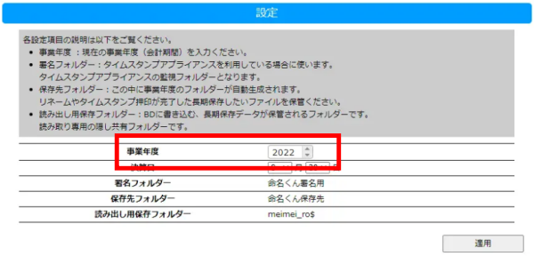 年度の設定はLAN DISKの設定画面より「命名くん連携」-「設定」から確認してください。