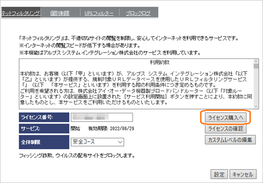 【IODATA】ネットフィルタリングの「ライセンス購入へ」が表示されない