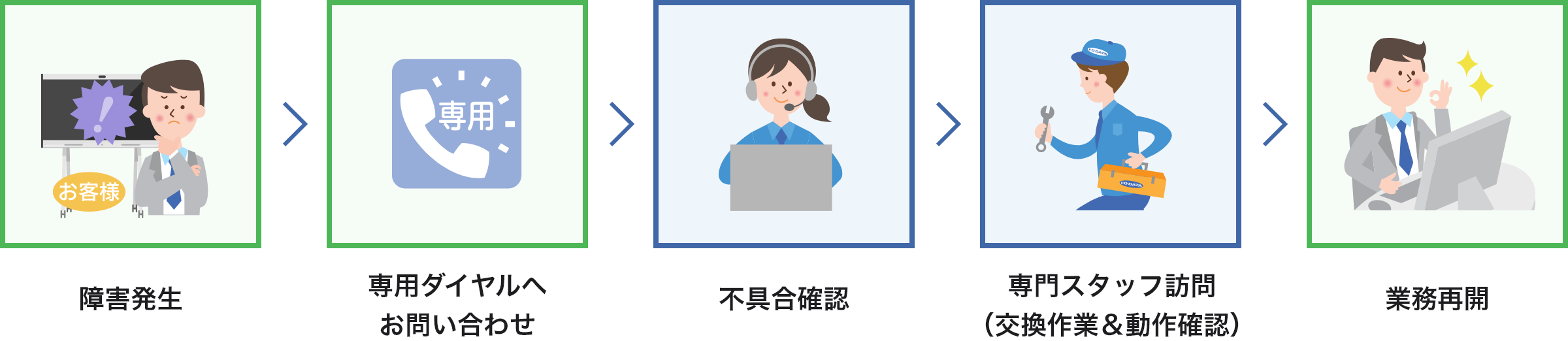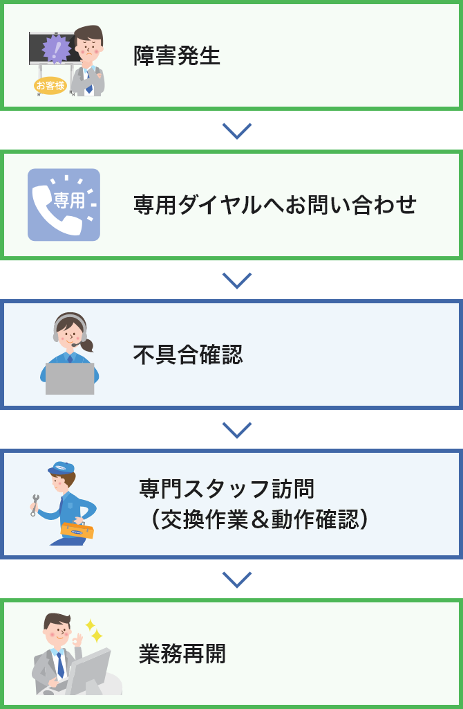 交換品お届け保守サービスは、受付から5営業日以内に交換品(本体)を送付するサービスです。